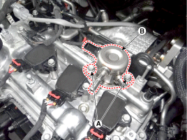 Выверните крепежные болты (А), затем снимите топливный насос.