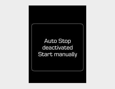 • Сообщение «Auto Stop Deactivated Start Manually». Запустить вручную) отображается на ЖК-экране.