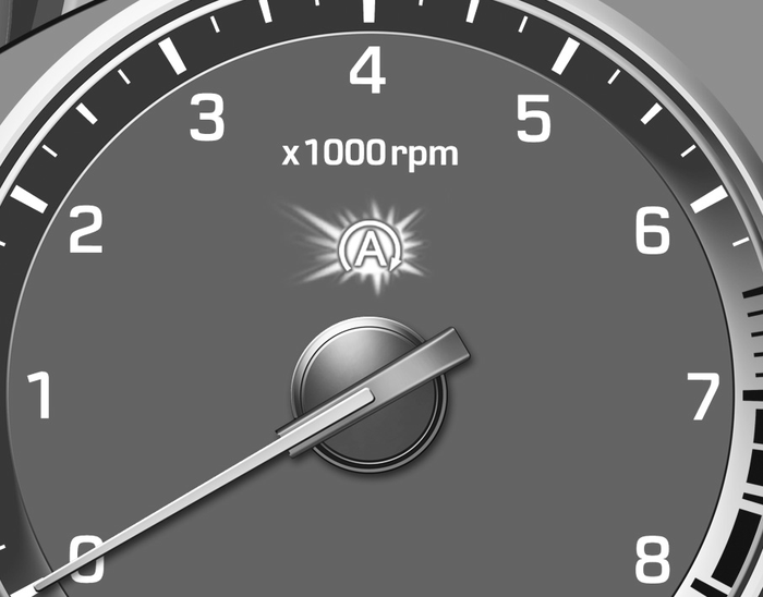 Двигатель останавливается, и зеленый индикатор AUTO STOP (