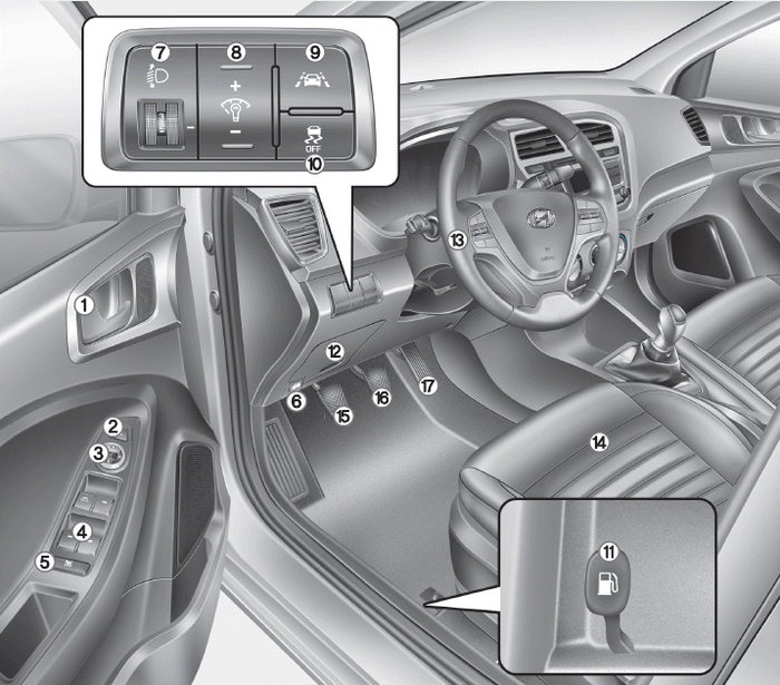 11. Рычаг открывания лючка топливного бака