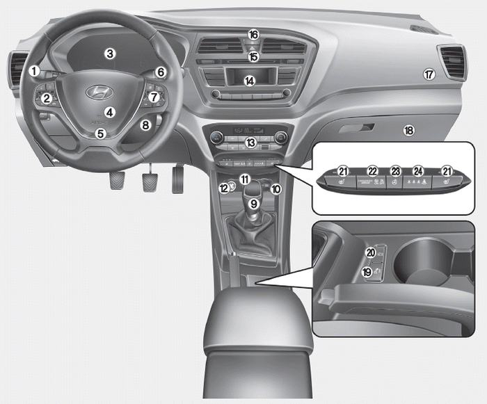 23. Кнопка обогрева руля