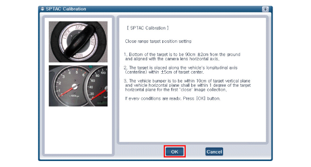 Поверхность цели (SST: 09890-3V100) должна быть перпендикулярна