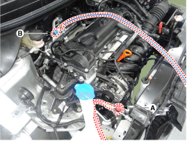 давление (A) и сервисный порт низкого давления (B), как показано,