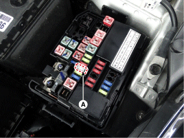 Отсоедините (-) кабель аккумуляторной батареи, затем установите реле аккумуляторной батареи.