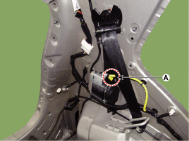 Отсоедините разъем преднатяжителя ремня безопасности заднего сиденья.