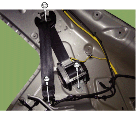 Установите натяжитель заднего ремня безопасности с помощью болтов