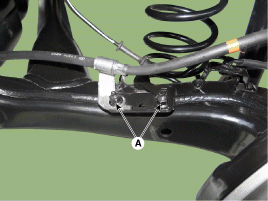 Ослабьте гайку (А) и снимите трос стояночного тормоза.