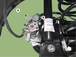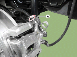 Снимите пружину (А), затем опорный болт рабочего рычага.