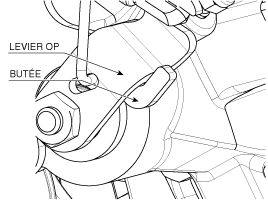 остановка на расстоянии (A) и (D) между рычагом (B) и стопором
