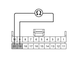 Измерьте сопротивление между контактами (M01-A) 20 и 19 разъема.