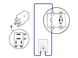 Подайте 12 В на клемму 85 и заземлите клемму 86, затем проверьте