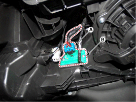 Отсоедините разъем (А), затем снимите резистор вентилятора.