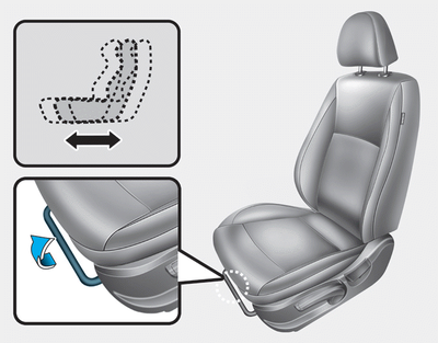 1. Потяните рычаг регулировки сиденья вверх и удерживайте его. эта позиция.