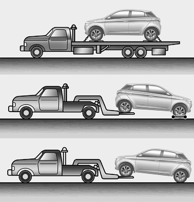 При буксировке коммерческим эвакуатором без колесных тележек всегда нужно поднимать переднюю часть автомобиля, а не заднюю.