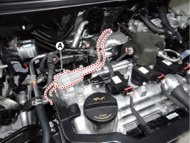 Отсоедините (А) от заднего кислородного датчика.
