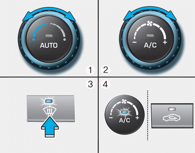 Чтобы разморозить внутреннее ветровое стекло