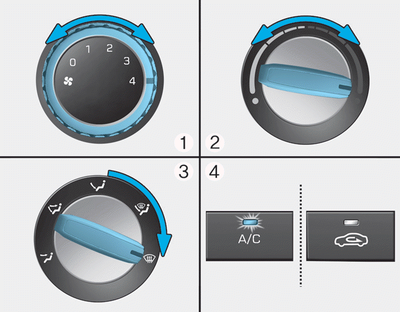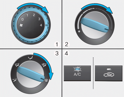 4. Наружный (свежий) воздух и кондиционер будут (если применимо) выбирается автоматически.