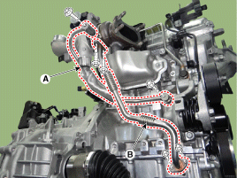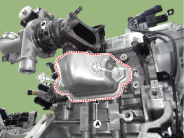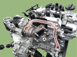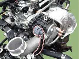 Снимите модуль впускного коллектора турбонагнетателя (А).