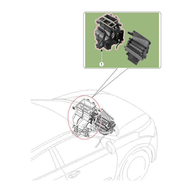 2. Сливной шланг в сборе 3. Крышка радиатора отопителя 4. Нагреватель PTC 5. Температурный привод 6. Радиатор в сборе 7. Нижняя крышка нагревателя |