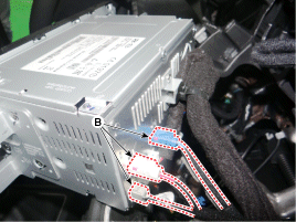 Снимите аудиосистему (А) после отсоединения разъемов и
