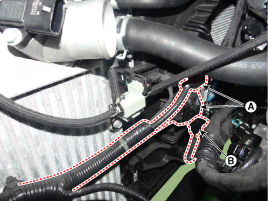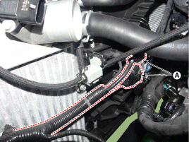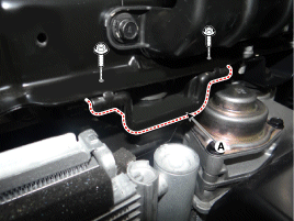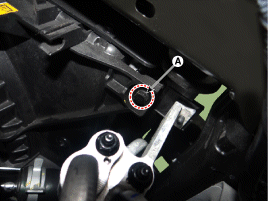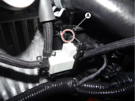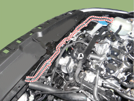 Снимите водяную трубку (А) с экрана охлаждающего вентилятора.