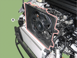 Снимите охлаждающий вентилятор (А) с кожуха вентилятора.