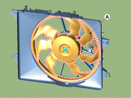 Снимите двигатель вентилятора (А) с кожуха вентилятора.