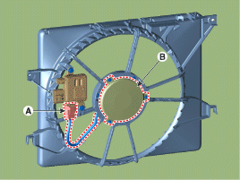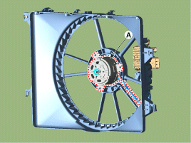 Отсоедините разъем двигателя вентилятора (А), затем снимите