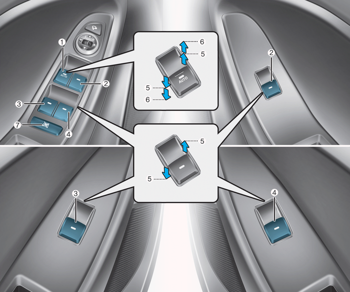 (2) Переключатель электрического стеклоподъемника переднего пассажира