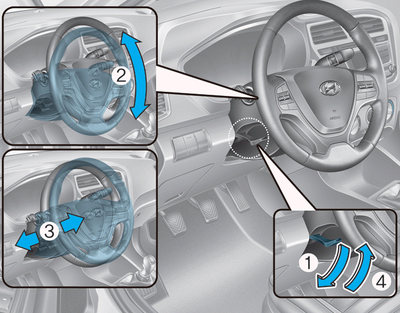 Чтобы изменить высоту или угол наклона рулевого колеса: