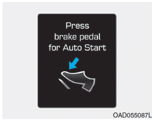 При переключении рычага переключения передач из положения N (нейтраль) в положение R (задний ход), D (движение) или Режим ручного переключения передач без нажатия педали тормоза. Сообщение "Нажмите педаль тормоза для автоматического запуска". педаль тормоза.