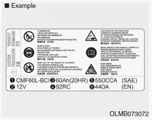 Фактическая этикетка аккумуляторной батареи в автомобиле может отличаться от иллюстрации.