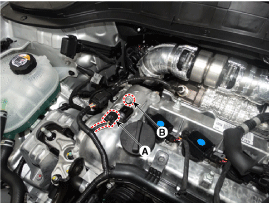 Отсоедините разъем клапана управления маслом CVVT (А).