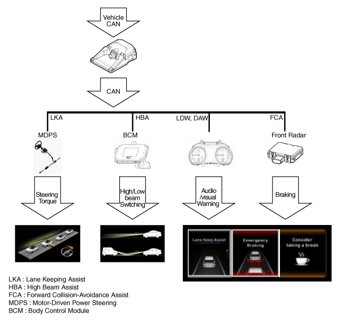 переключатель во время работы системы Smart High Beam Assist (HBA)