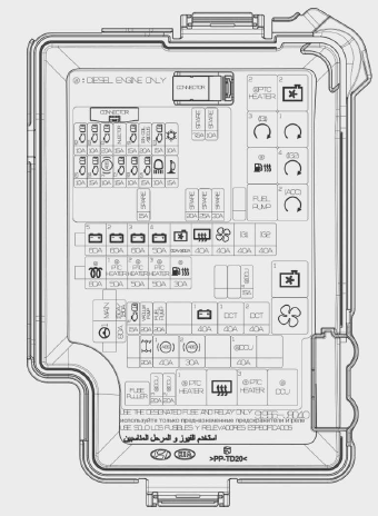 Панель предохранителей в моторном отсеке (крышка клеммы аккумуляторной батареи)