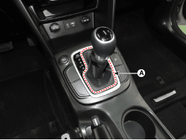 Снимите ручку переключения передач и пыльники (A), повернув ручку против часовой стрелки.