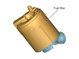 Снимите кронштейн топливного фильтра (А) после освобождения фиксирующих крючков.
