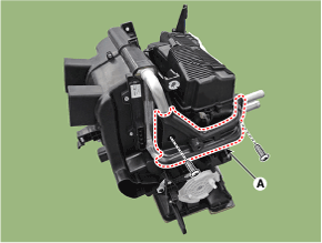Снимите крышку радиатора отопителя (А) после ослабления крепежных винтов.