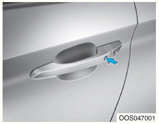 Кнопка дверной ручки будет работать только тогда, когда смарт-ключ находится в пределах 0,7~1 м (28~40 дюймов) от наружной ручки двери.