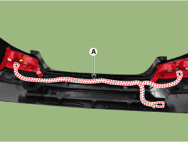 Отсоедините жгут проводов крепления балки заднего бампера (А).