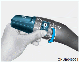 Установите переключатель освещения в положение габаритного огня, поверните переключатель освещения (1) в положение передних противотуманных фар, а затем поверните переключатель света (1) назад. положение противотуманных фар.