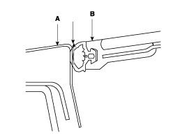 Проверьте высоту ступени между панелью крыши (А) и уплотнителем из стекла.