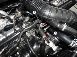 Отсоедините паровой шланг (В), который подсоединен к впускному коллектору.