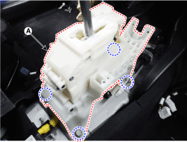 Снимите ручку рычага переключения передач и пыльники (A), потянув их вверх.