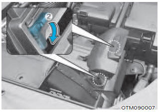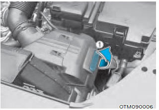 1. Поднимите крышку фильтра воздухоочистителя (1).