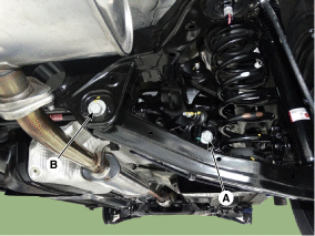 (A) и болт распредвала заднего нижнего рычага (B) в направлении