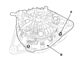 Снимите заднюю крышку (А) после откручивания гаек (В).