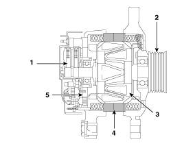 2. Шкив 3. Ротор 4. Статор 5. Выпрямитель |