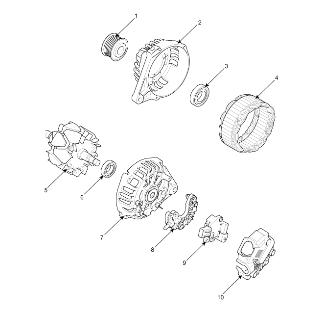 7. Задняя крышка 8. Выпрямитель в сборе 9. Регулятор 10. Задняя крышка |