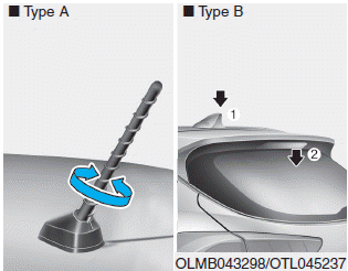 Антенна на крыше принимает сигналы AM и FM. Поверните антенну против часовой стрелки, чтобы удалить его. Поверните это по часовой стрелке, чтобы переустановить его.